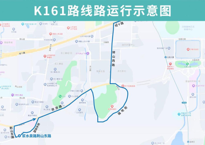 K161路恢复后开往建大新校区方向沿旅游路向西至转山西路向北恢复原线,恢复原转山西路旅游路(路东)站点,撤销临时增设的下井庄园(路东)站点;开往浆水泉路荆山东路方向线路不变。