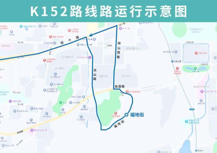 K152路恢复后开往舜耕路土屋路方向沿旅游路向西至转山西路向北恢复原线,恢复原转山西路旅游路(路东)站点,撤销临时增设的下井庄园(路东)站点;开往福地街方向线路不变。